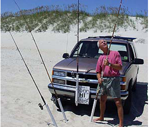 ![]() The FishingLicense is available with or without 4 "sand spike" rod holder inserts. You can make your own "sand spikes" from 1.5" PVC pipe (22" long, sharp 70 degree angle bottom) or you can purchase them from a tackle shop or you can add them to your FishingLicense order with us. (License tag not included.) |